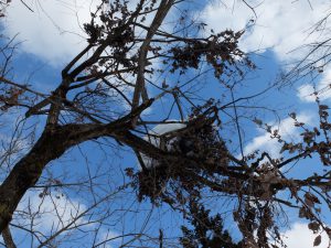 久しぶりの雪上調査でしたが、行く先々で数年分のツキノワグマの爪跡や、ツキノワグマがコナラのドングリを採食する際に形成した昨年秋のクマ棚などが「集落のすぐ近くの里山(旧薪炭林・裏山)で」多数発見されました。ツキノワグマが残す爪跡やクマ棚などを「フィールドサイン(生態痕跡)」と言いますが、これらのフィールドサインや現在までの調査結果から考察すると、この定点調査エリア(旧薪炭林)で行動しているツキノワグマは「複数頭」の可能性が高く、またその利用期間も「複数年(10年以上)に及ぶ)」と思われます。