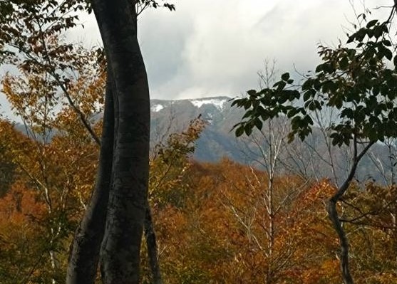 10月29日(水) 予想通りやはり浅草岳は「初冠雪」となりました。さすがに一気に紅葉が進み、寒い一日でした。センターの事務室から、木の間 越しに見える浅草岳が白く見えるようになると、シーズンの終わりが近いという一抹の寂しさ感じる時でもあります。