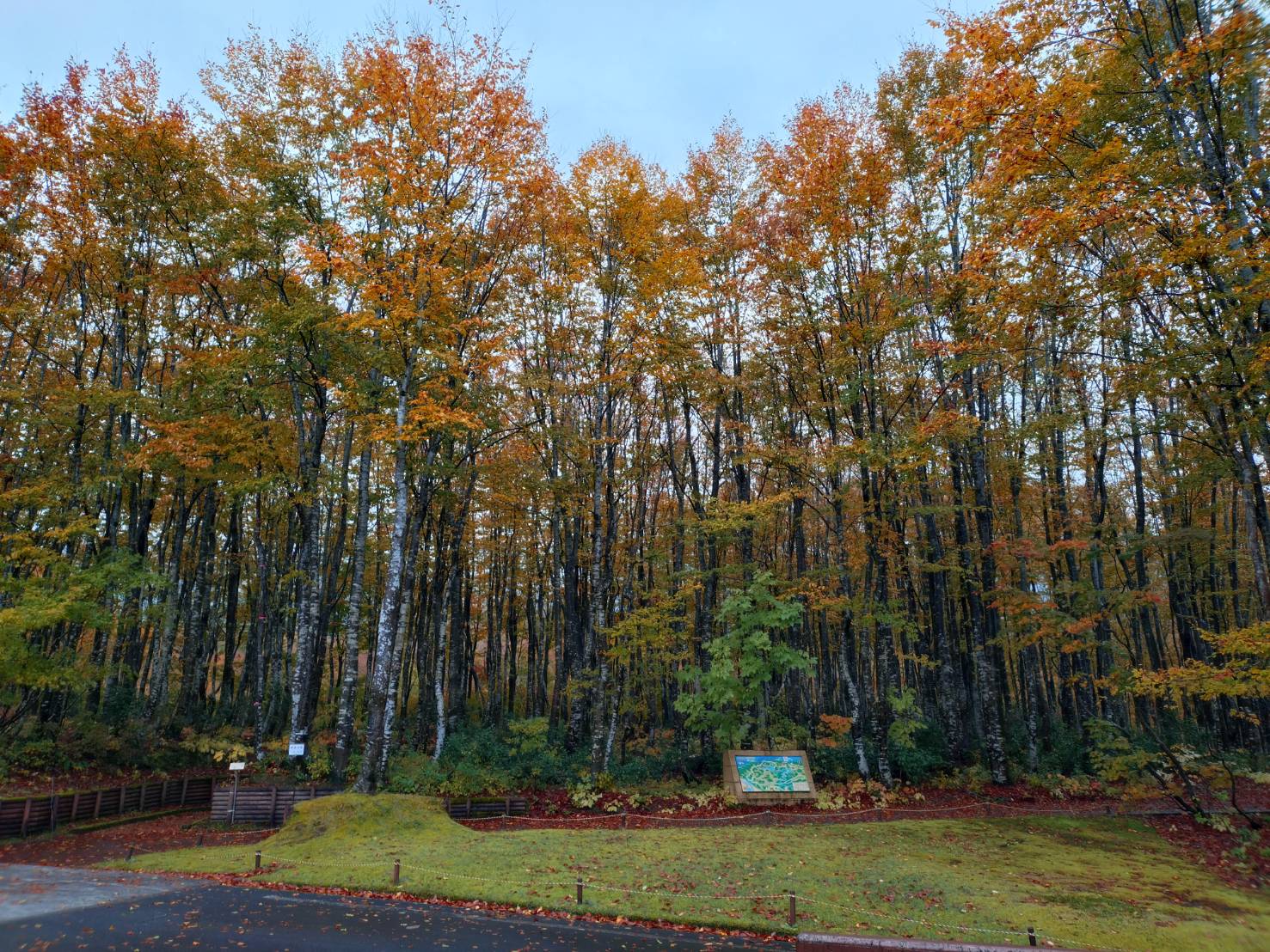 エコ・ミューアムは今紅葉の見頃です。一年中で最も華やいで見える時かもしれません。一晩で一気にブナの樹々の葉を落とす雨風の日が、一日でも遅くと祈るような毎日です。