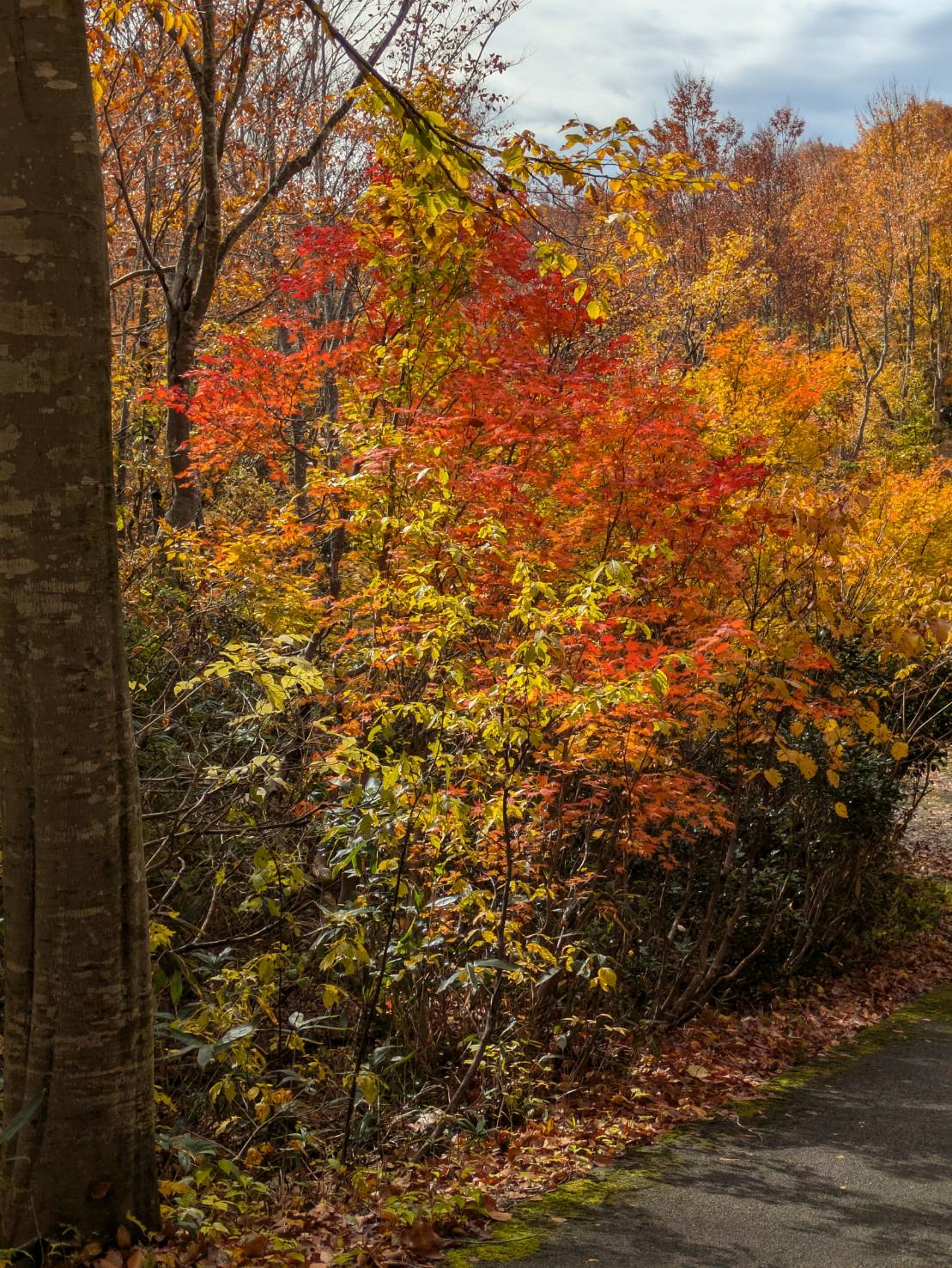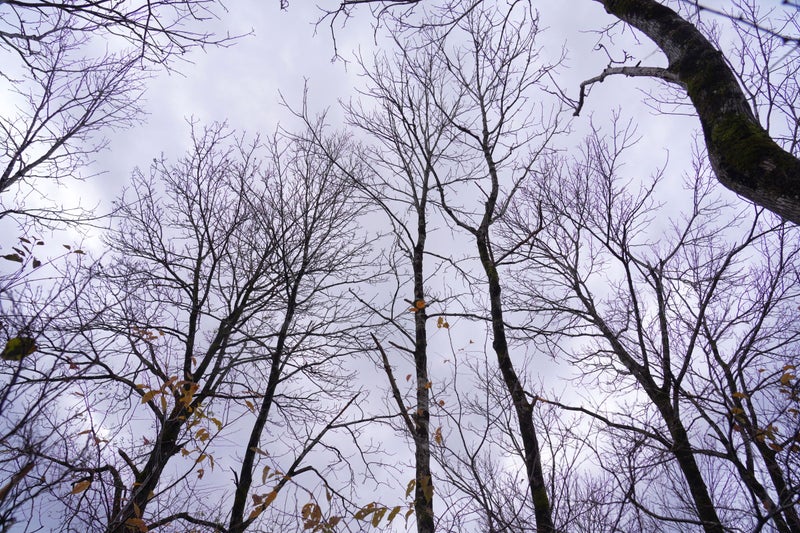 オールスターキャストで皆さまをお迎えしたエコ・ミュージアムの紅葉も、いよいよ終盤に入ってきたようです。 遠くからひと際目立つアカイタヤ は黄葉が散り尽くし、ヤチダモ の疎林もすでにすっかり葉を落としました。あの独特の色合いで楽しませてくれたコマユミも、ヤチダモの後を散り急いでいるように見えます。 ただ、 ブナの森だけは主役と言わんばかりに光り輝いています。そのブナ林も、雨風によって一夜にして葉を落としてグレーに変わってしむのも例年のことです。 一日でも長く紅葉を楽しんでいただけますように、雨風の日が来ないことを祈るような気持ちで気象情報を見るこの頃です。